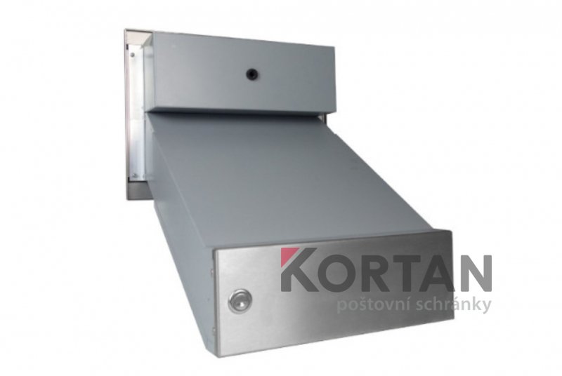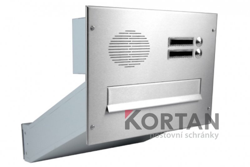 1x poštovní schránka D-042 šikmá k zazdění do sloupku + čelní deska s 2x zvonkem a HM URMET - NEREZ / šedá